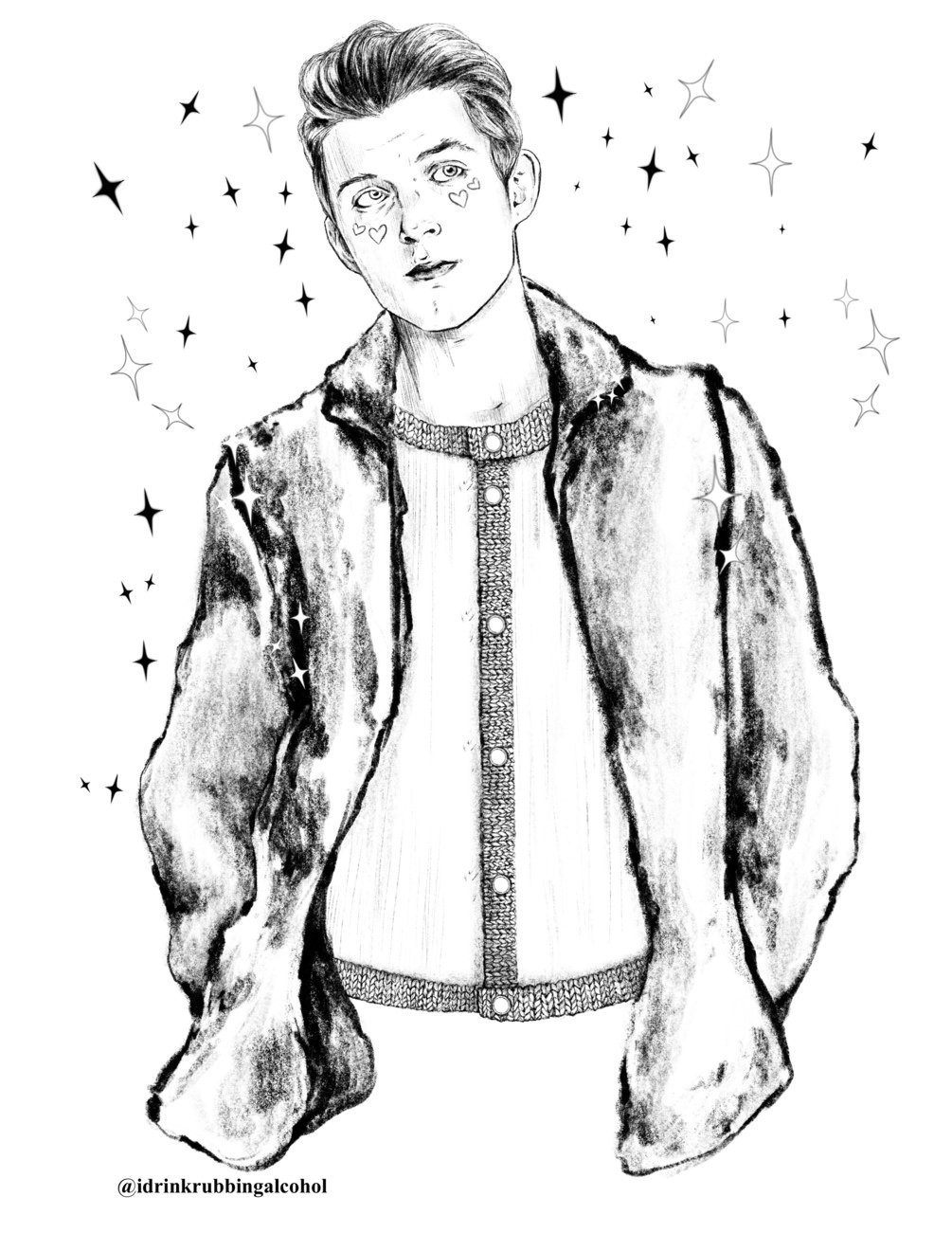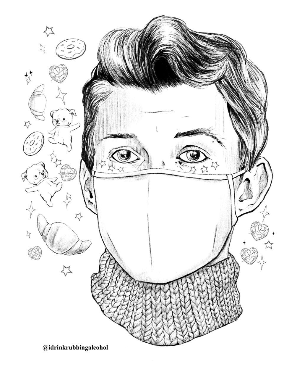You’ll get four printable coloring book pages: a Tom portrait, design Tom a mask, design Tom a cozy sweater, and various Tom characters.